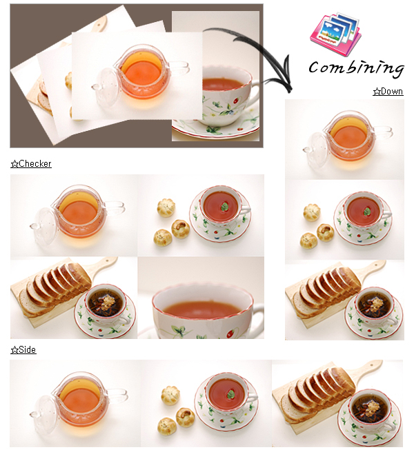 이어붙이기: 여러 사진을 아래로, 옆으로, 바둑판으로 이어 붙여서 한 장으로 만듭니다.