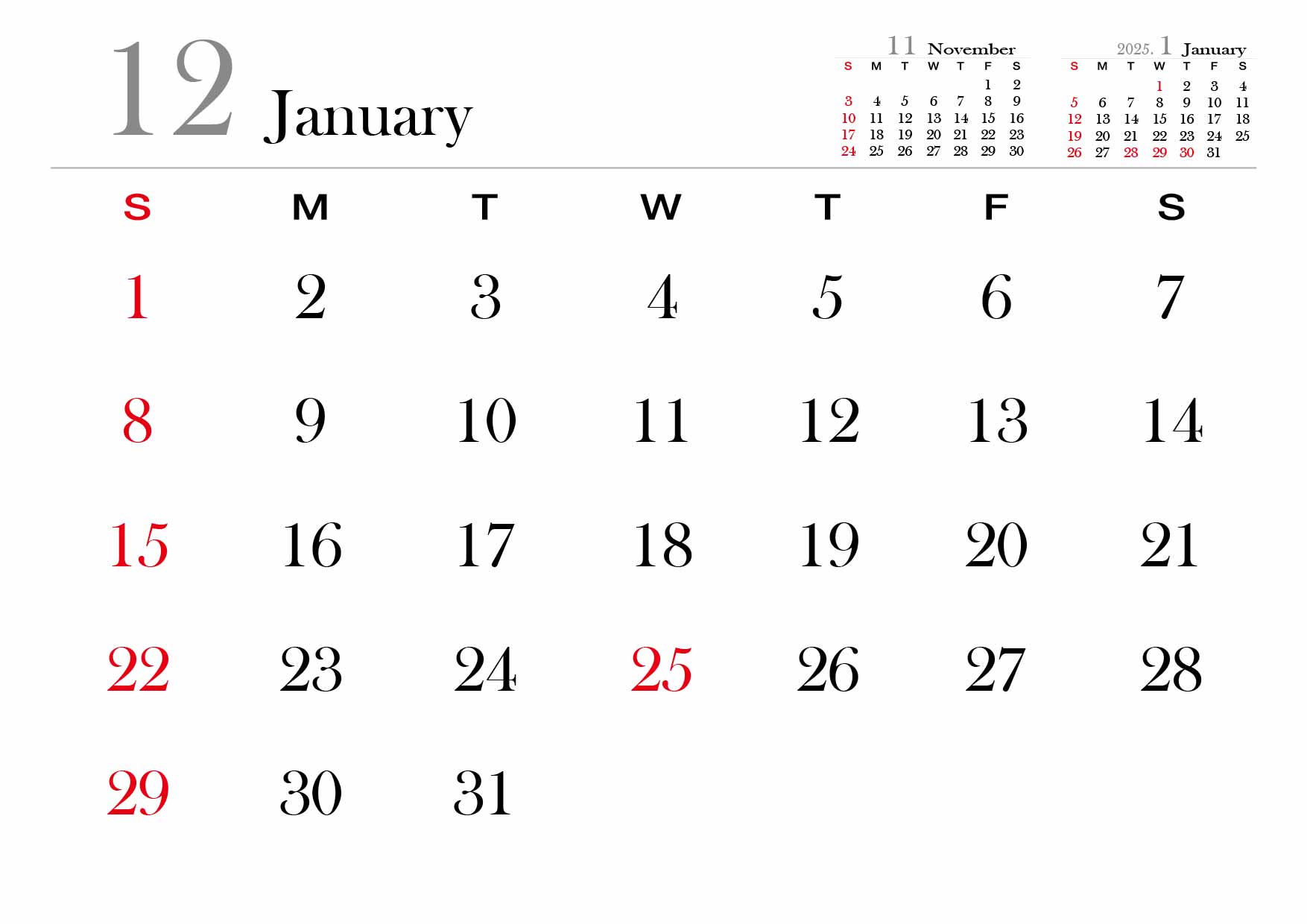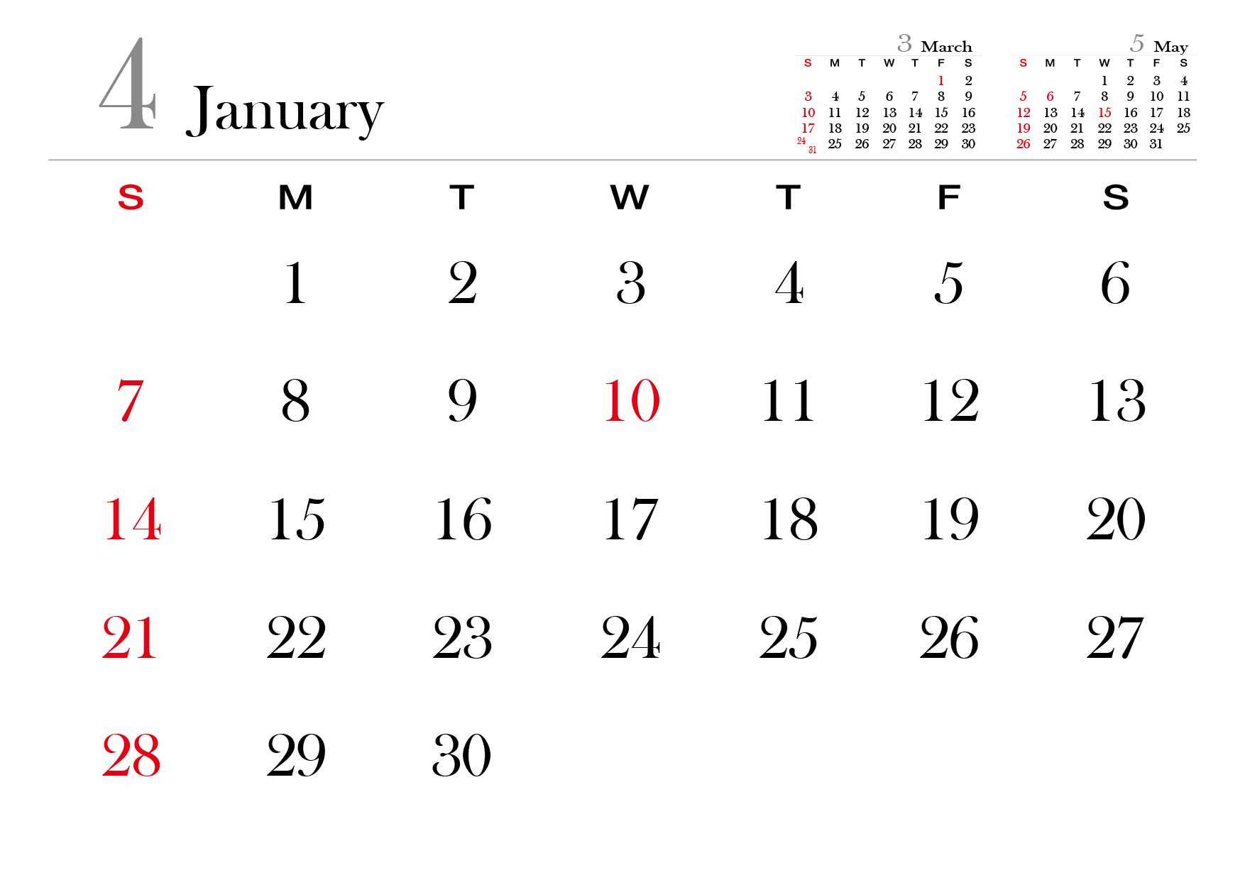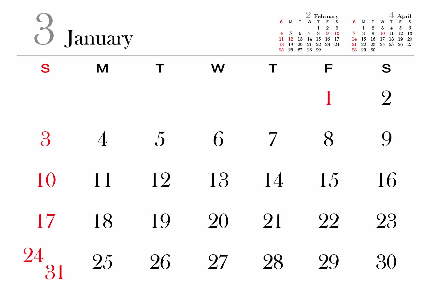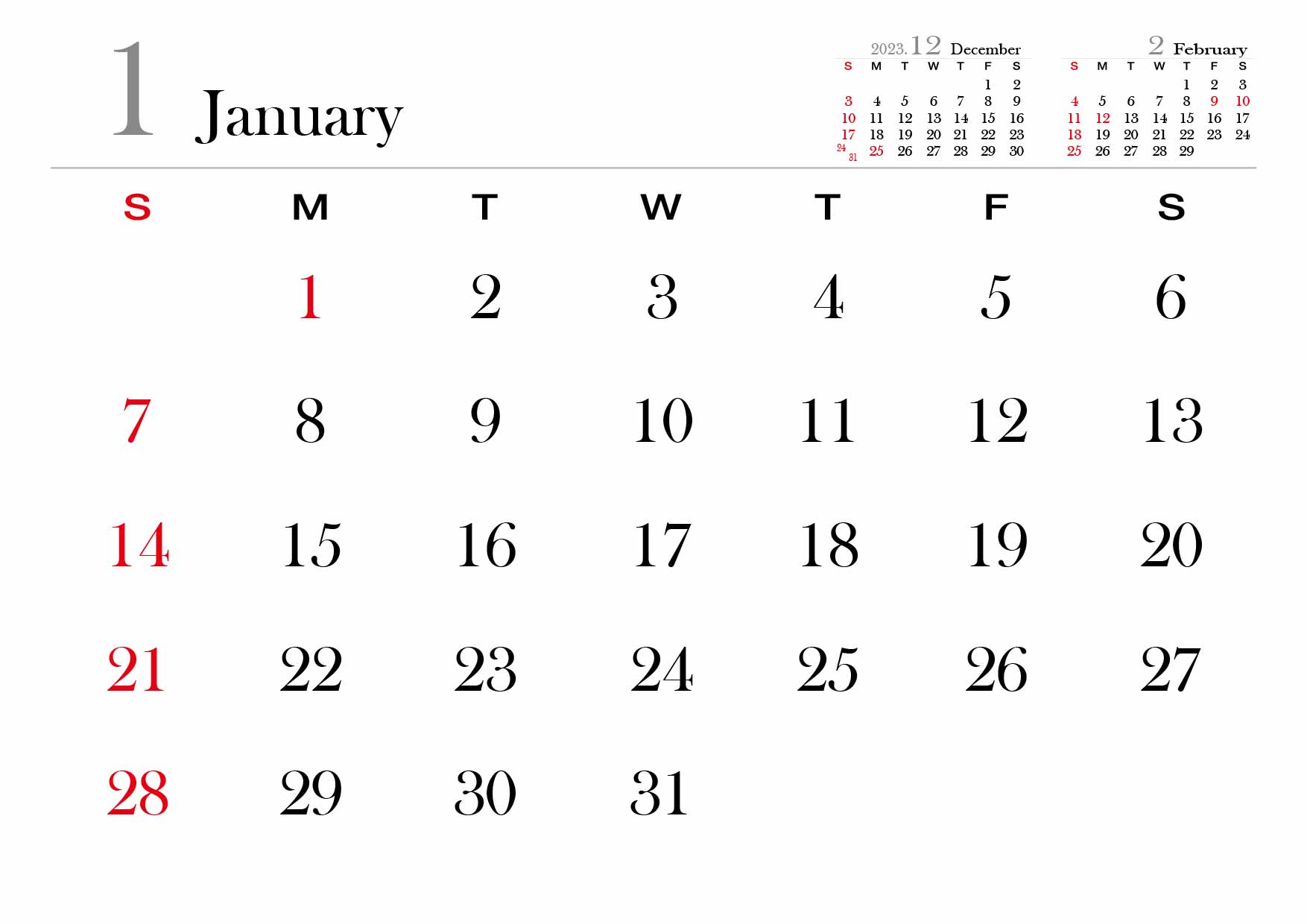 2024년 달력을 A4사이즈에 맞춰서 월별로 만들어봤습니다.