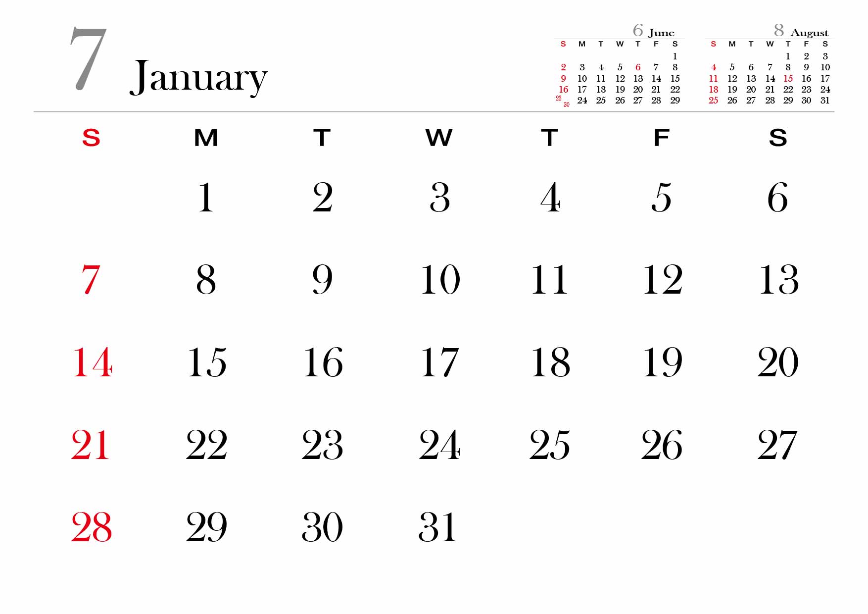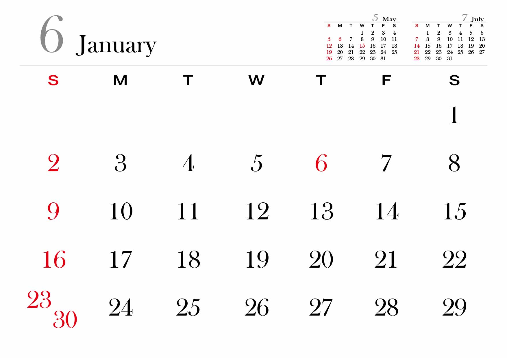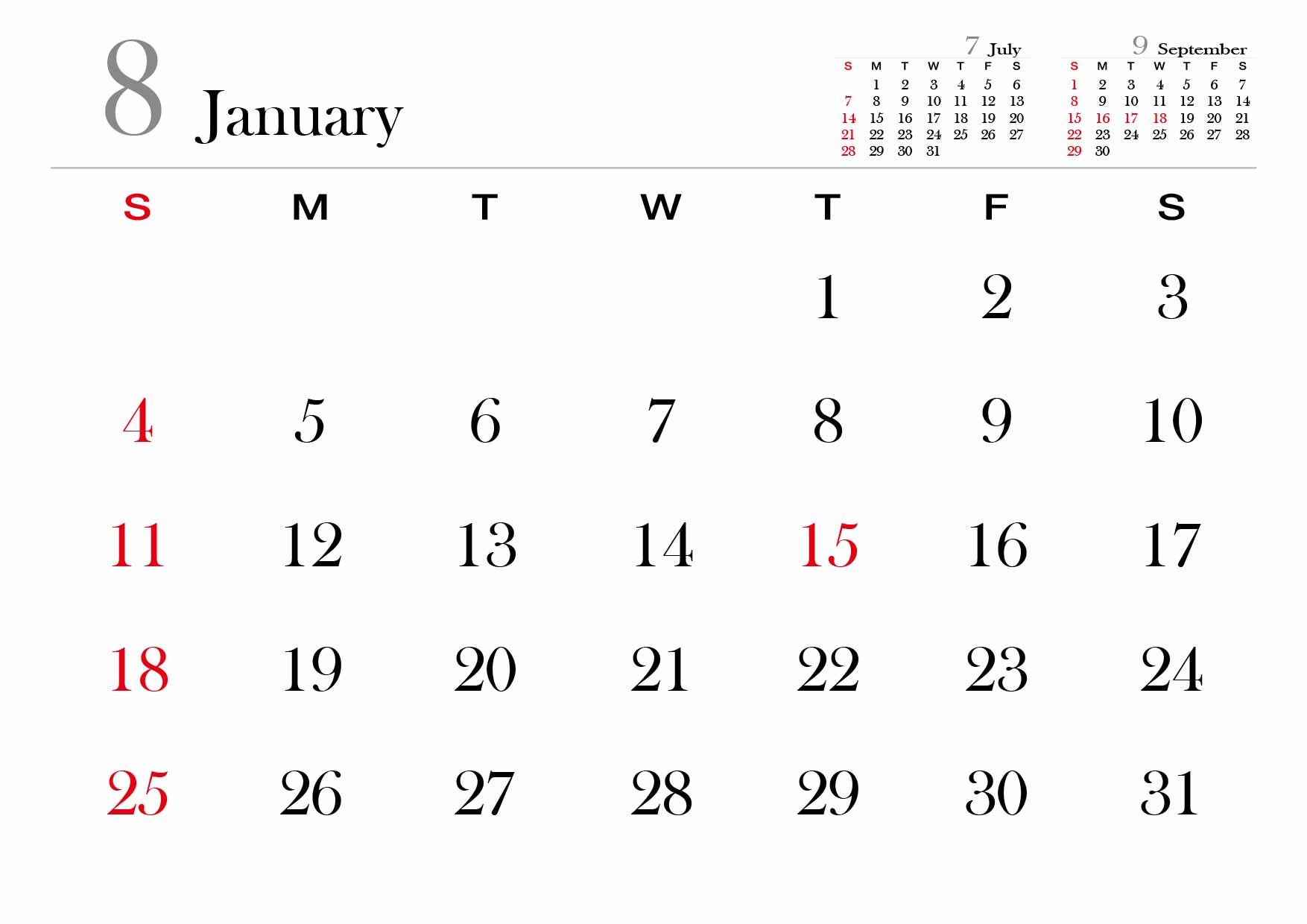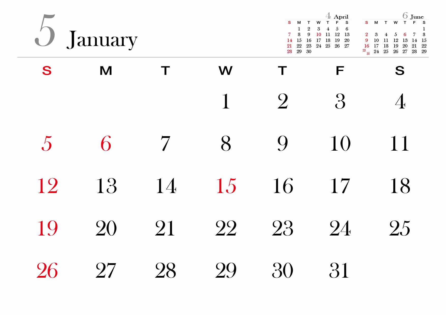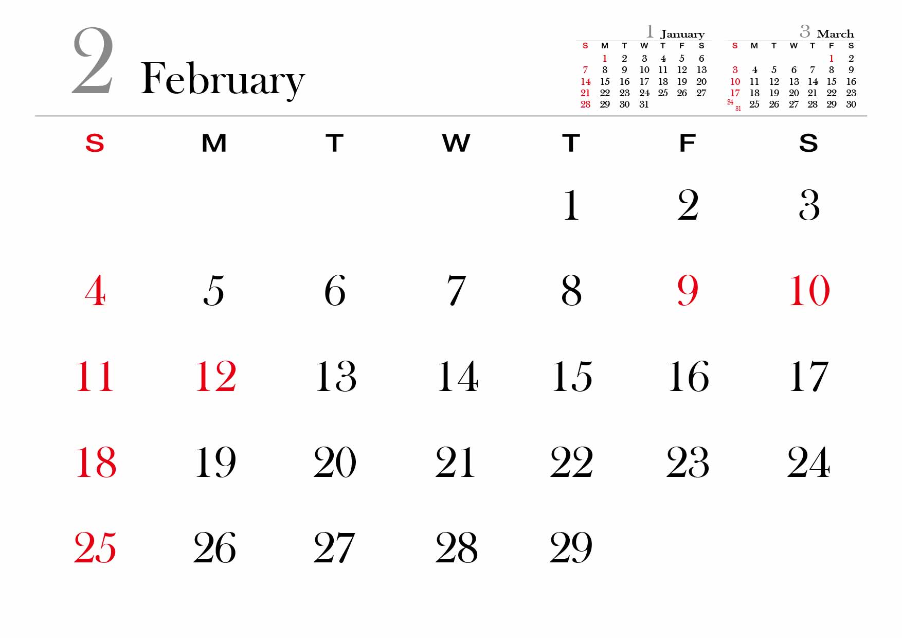 2024년 달력을 A4사이즈에 맞춰서 월별로 만들어봤습니다.
